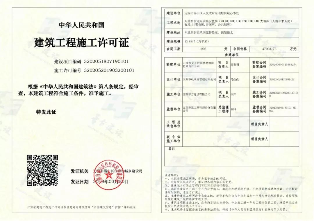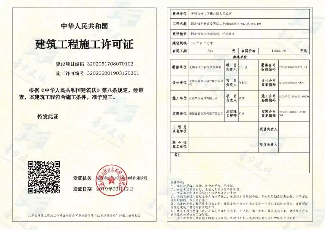 近日, 江蘇華方建設有限公司又獲得了兩個全新的政府重點工程施工許可證!