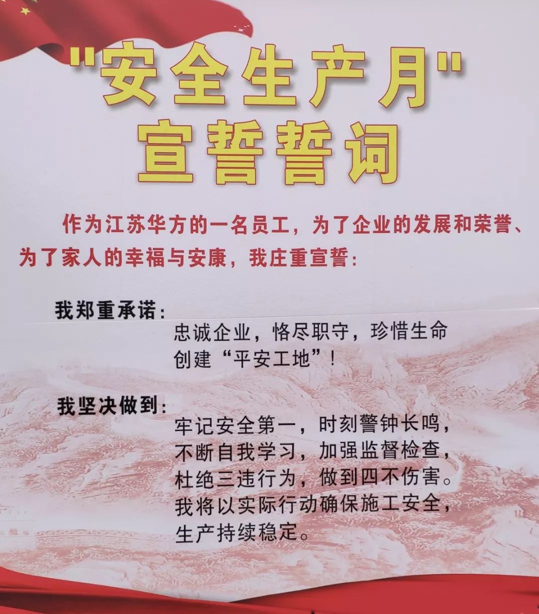 為深入貫徹落實“省住房城鄉建設廳關于開展2019年全省建筑施工‘安全生產月’活動的通知”,江蘇華方建設積極行動起來,以習近平新時代中國特色社會主義思想為指導,深入學習貫徹黨的十九大、十九屆二中、三中全會精神和習近平總書記關于安全生產的重要論述,認真落實黨中央國務院和省委省政府關于安全生產工作的決策部署,牢固樹立安全發展理念,于2019年6月6日,由公司文明創建辦、公司安全科牽頭,組織各項目部專兼職安全員,在無錫錫山東北塘東蕾苑項目部,隆重舉行“安全生產月”啟動儀式。