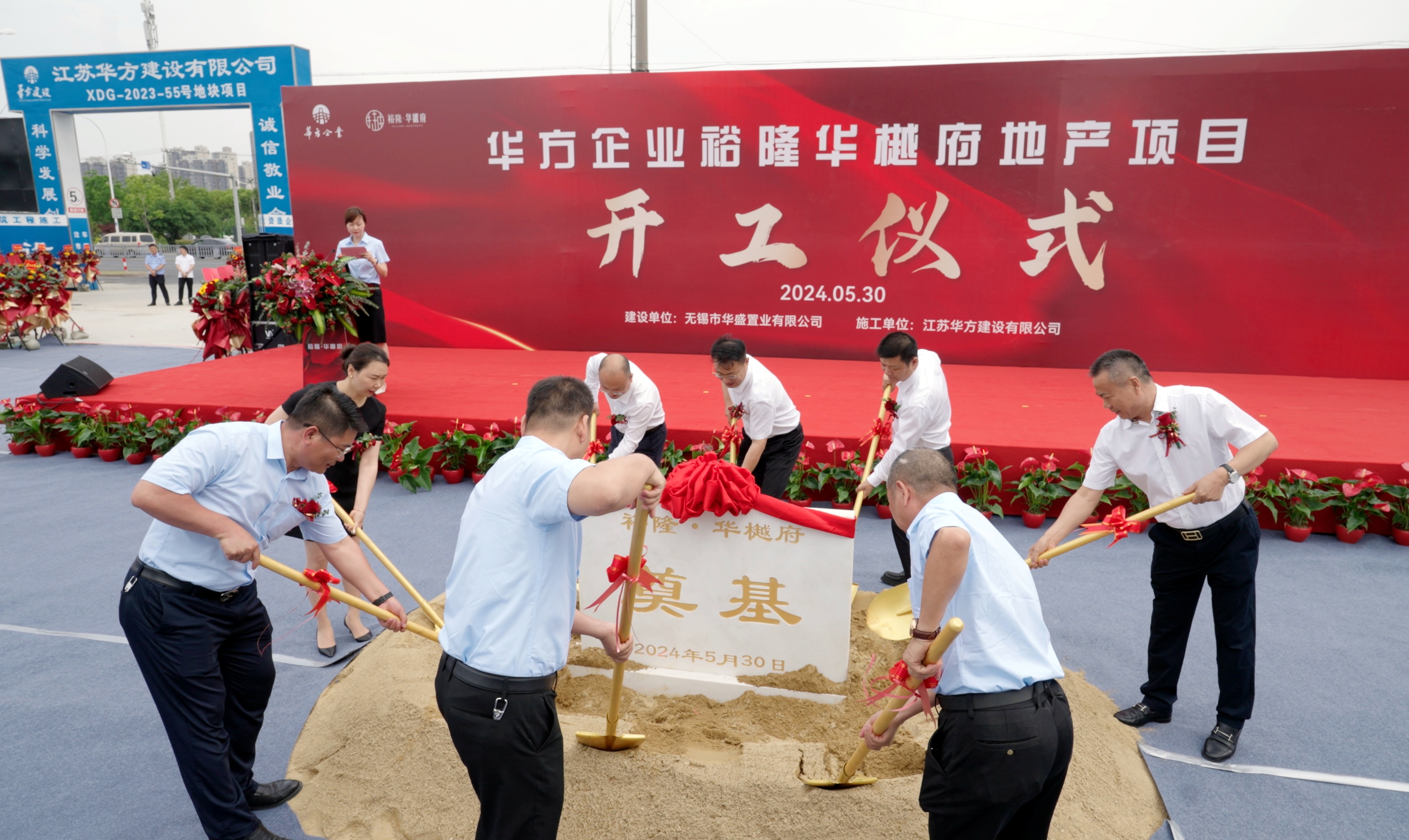 2024年5月30日,“華方企業(yè)裕隆華樾府地產(chǎn)項(xiàng)目開(kāi)工儀式”盛大舉行。項(xiàng)目現(xiàn)場(chǎng)洋溢著溫暖而又熱烈的氣氛:鋪設(shè)整齊的地毯、生機(jī)盎然的鮮花、迎風(fēng)飄揚(yáng)的旗幟,重型工程車(chē)整齊排列在旁,將開(kāi)工儀式現(xiàn)場(chǎng)裝扮一新。