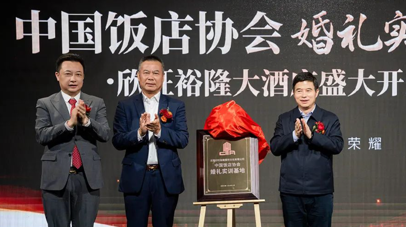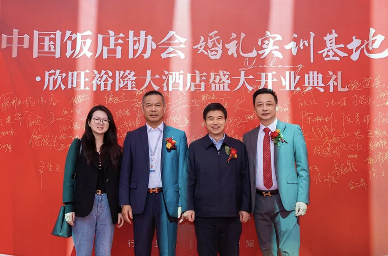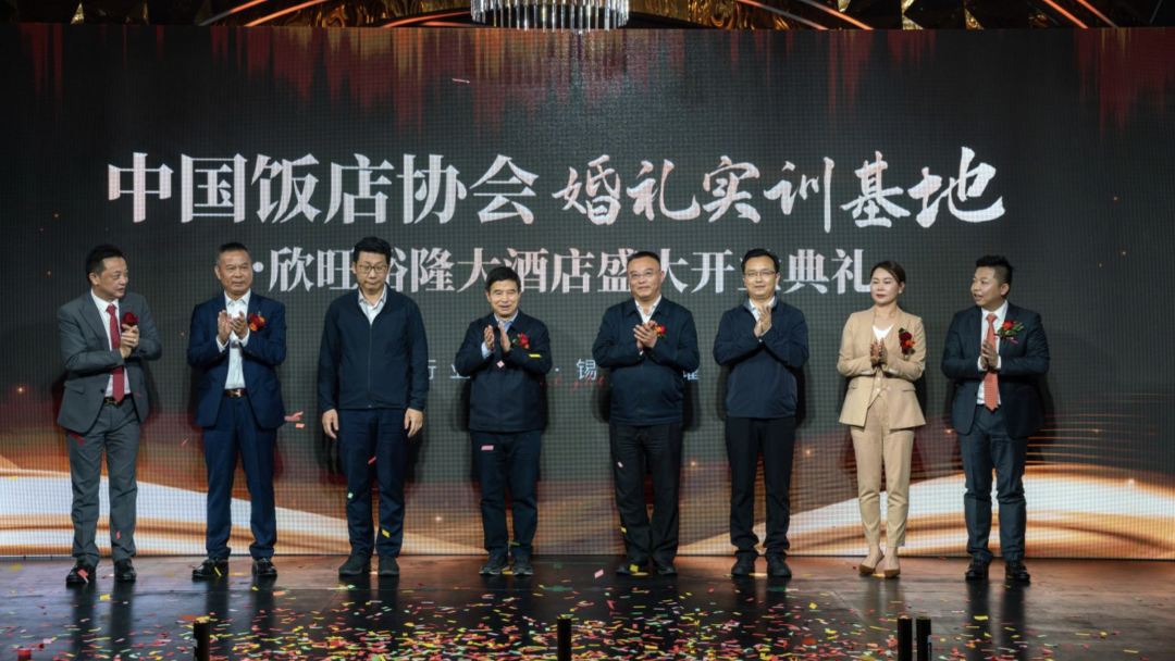 宏偉藍圖,展現(xiàn)光明前景,偉大征程,召喚新的進發(fā)。中國飯店協(xié)會會長陳新華、華方企業(yè)創(chuàng)始人李正興與欣旺集團董事長唐國忠共同為“中國飯店協(xié)會婚禮實訓(xùn)基地”揭牌。