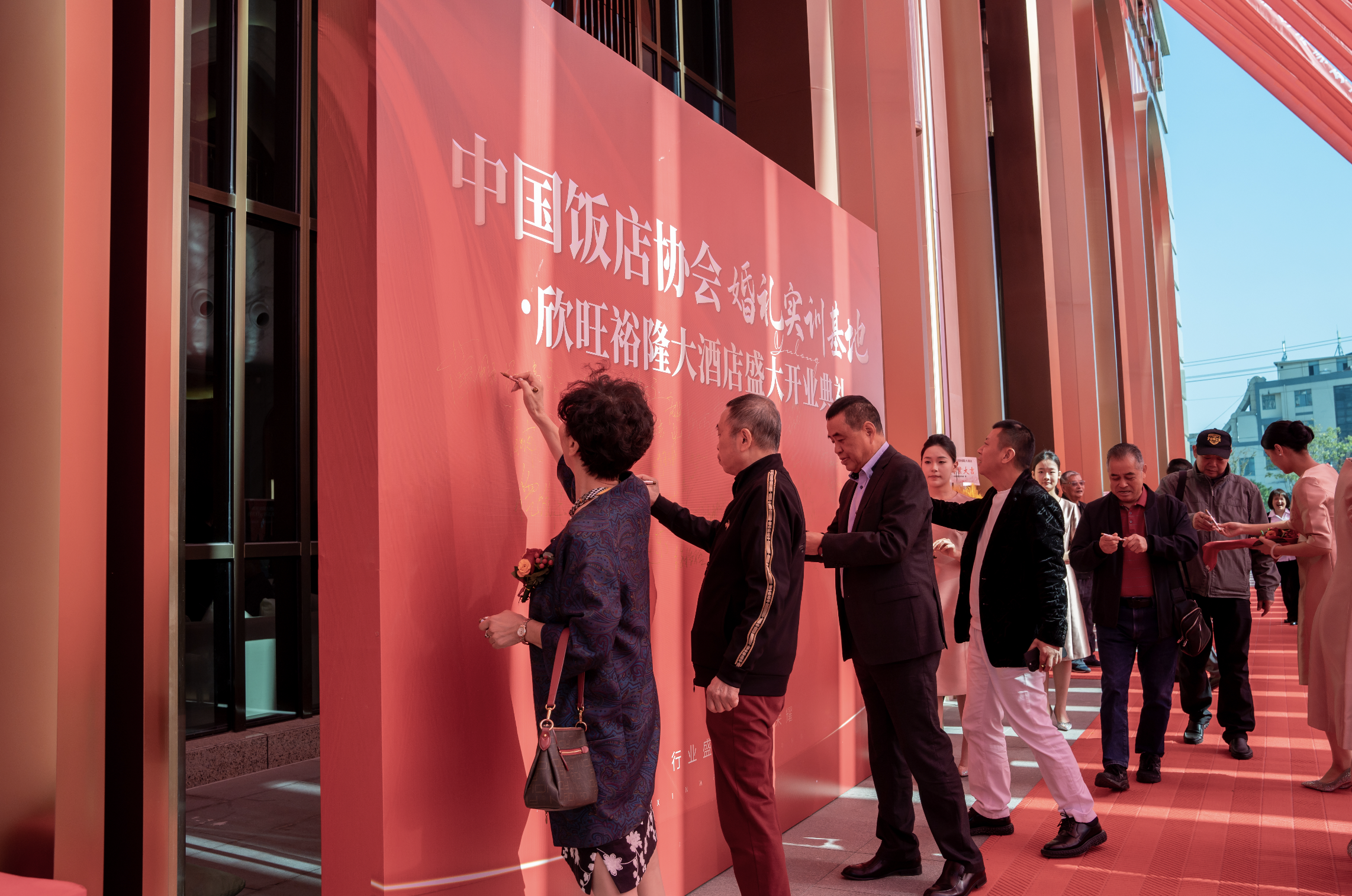 慶典現(xiàn)場一片喜慶祥和的氛圍撲面而來,來賓們紛紛在簽到墻簽名留念,共同慶祝欣旺裕隆大酒店的盛大開業(yè)。
