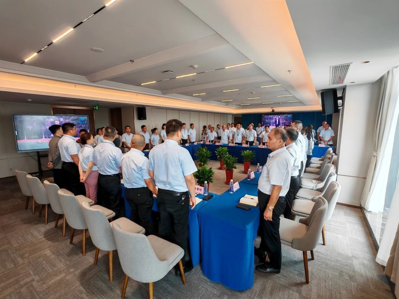 全體參會人員肅立齊唱,鏗鏘有力的旋律回蕩在會場,彰顯了華方人團結拼搏、銳意進取的精神風貌