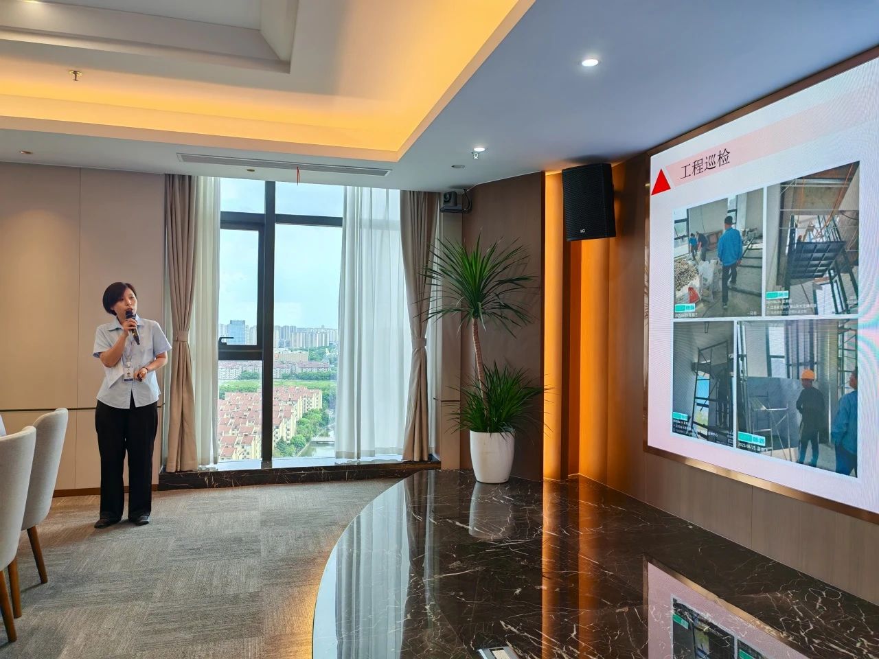 華方置業總經理李海平的匯報主題是“高標準,嚴要求,品質至上暨置業公司2025年上半年度工作匯報”。