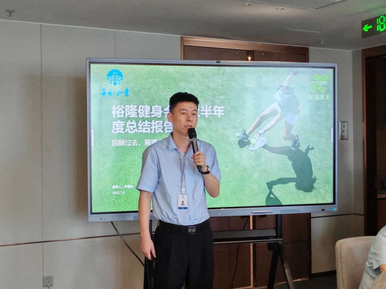 裕隆健身負責人李震協首先對上半年度的工作進行全面梳理和總結,分享了健身業務的運營成果,未來將長短期目標結合,同時在成本控制和會員選擇上做出平衡,優化課程內容,更好服務每一位會員。
