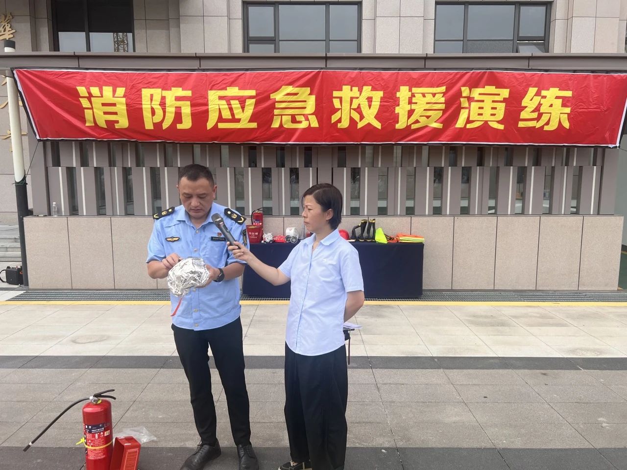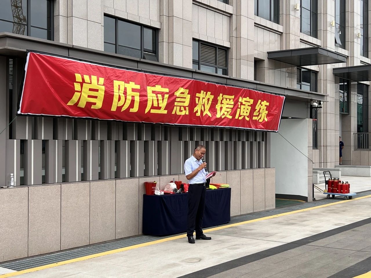 結合專業設備,救援隊負責人詳細講解了火場逃生要領、滅火器使用方法及防煙面罩佩戴技巧,并和大家明確疏散路線、集合點及人員清點要求,確保演練有序進行。